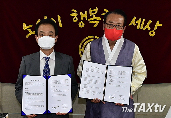theTAX tv 김용진. 채흥기 기자 | 국세동우회(회장 전형수)와 대한노인회중앙회(회장 김호일)는 지난 13일 오후 대한노인회중앙회 회의실에서 세무정보교류 협약식을 갖고 무료세무강의 등 상호협력키로 했다.