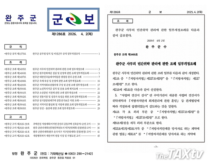 theTAX tv 채흥기 기자 | 전북특별자치도 완주군(군수 유희태)이 주민의 혈세로 집행되는 대규모 민간위탁 사업비에 대해 외부 전문가 검증을 도입하며 재정 투명성 강화에 나섰다.