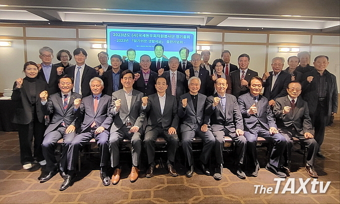 국세동우회(회장 전형수)는 오는 12일 여의도 국민일보빌딩 12층 루나미엘레 컨벤션홀에서 2023년 정기총회를 갖고, 이영국, 황종대, 방기천, 이용연, 류생규, 김주석, 서행남, 배택현, 홍성범 등 9명을 부회장으로 위촉했다.