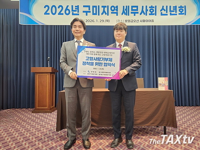 이와 관련 구미시와 구미지역세무사회(회장 이선훈)은 지난달 29일 호텔금오산 연회장에서 고향사랑기부제 활성화 등 지역협력 업무협약을 체결하고 구미시 고향사랑기부제 활성화를 위해 함께 손잡았다.