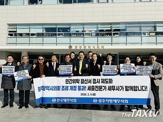 구재이 한국세무사회 회장은 “이번 광주광역시의회 조례 가결은 세무사가 민간위탁 사업비 결산검증을 수행할 수 있다는 점을 광역자치단체 차원에서 최초로 제도화한 역사적인 성과”라며 “세무사회는 앞으로도 세금 낭비를 막고 국민 신뢰를 높이는 공공재정의 책임 있는 파트너로서 역할을 다하겠다”고 밝혔다.