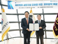 theTAX tv 채흥기 기자 | 한국세무사회(회장 구재이)와 재외동포청(청장 김경협)은 재외동포의 세무지원 강화를 위해 업무협약(MOU)을 체결하고 적극 협력키로 했다. 두 기관은 지난 13일 서울 광화문 소재 재외동포서비스지원센터에서 김경협 청장과 구재이 회장이 참석한 가운데 업무협약을 체결했다. 재외동포청은 2023년 6월 5일 출범과 동시에 국적·병역·세무 등 재외동포와 관련된 민원서비스를 개시했으며, 이후 상담 분야 확대와 관계부처 협업 등을 통해 적극행정 과제를 발굴해 왔다. 이와 관련해 한국세무사회는 지난 1월 ‘재외동포 세무지원센터’를 개설했으며, 세무 민원 분야에 보다 전문성 있는 서비스를 제공하기 위해 이번 협약을 추진했다. 이번 업무협약은 ▲재외동포청의 인프라와 한국세무사회의 전문 인력을 활용한 자문서비스 지원 ▲국세 관련 실무자료 제공 및 정책 연구·제도 개선 협력 ▲재외동포 대상 세무교육·설명회 공동 추진 및 홍보 등 상호 협력 방안이 포함됐다. 양 기관은 향후 관련 민원 분야 협력관계를 더욱 강화해 나갈 예정이다. 구재이 한국세무사회 회장은 “700만 재외동포들이 복잡한 국내 세법으로 인해 겪는 고충을 해결하는 데 1만7천 세무사가